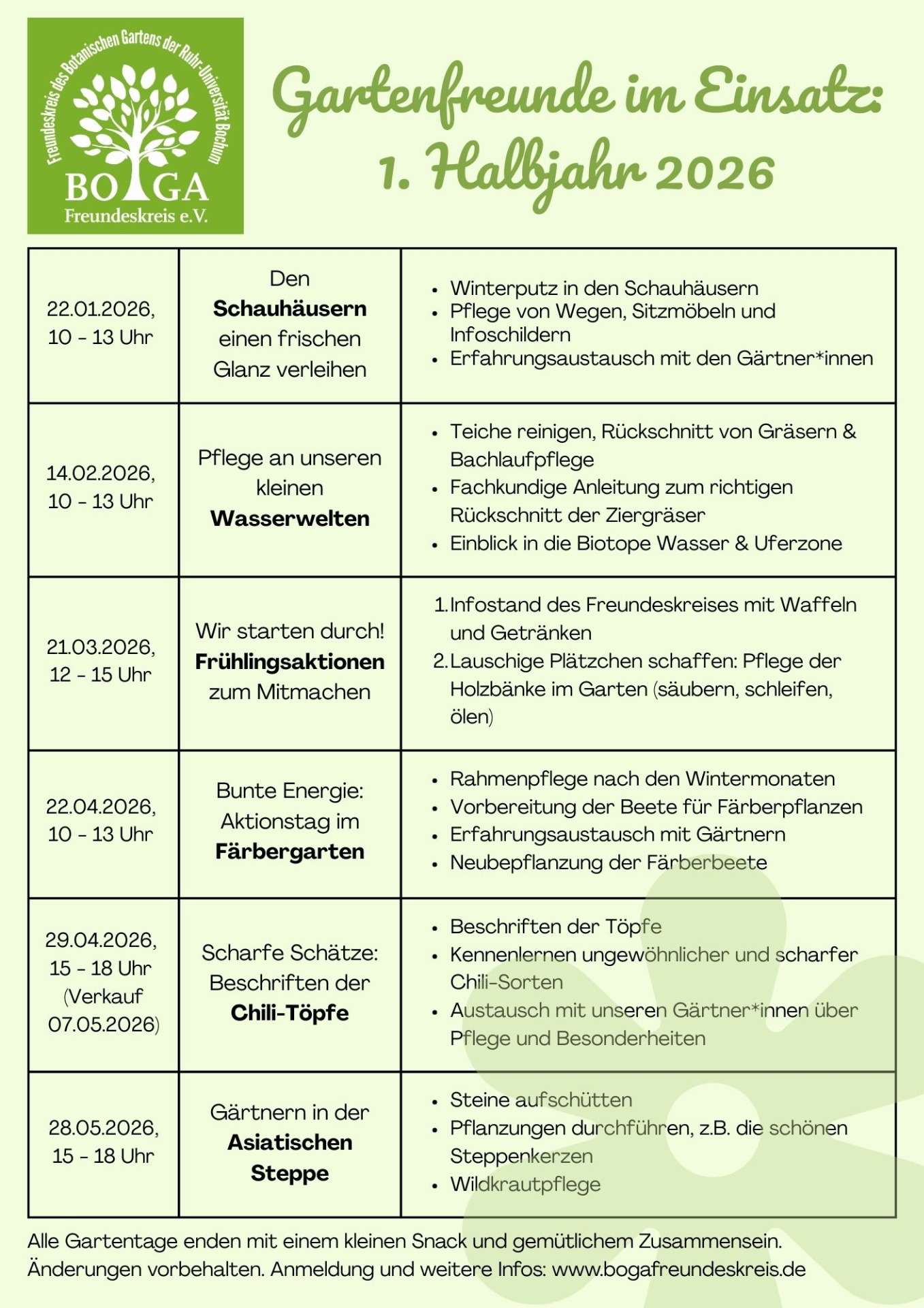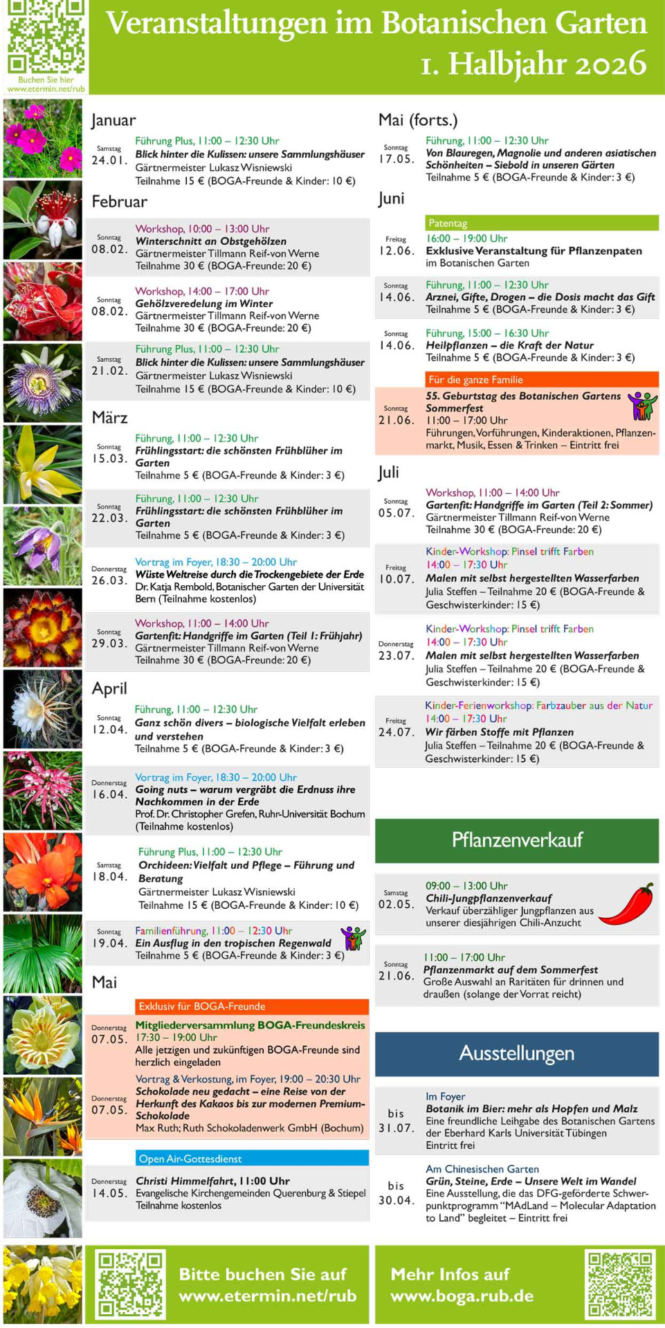 Unser Veranstaltungsprogramm erscheint halbjährlich und richtet sich an alle, die Freude an Natur, Pflanzen und Wissen haben. Schauen Sie rein – wir freuen uns, Sie bei einer unserer nächsten Veranstaltungen im Garten zu begrüßen!